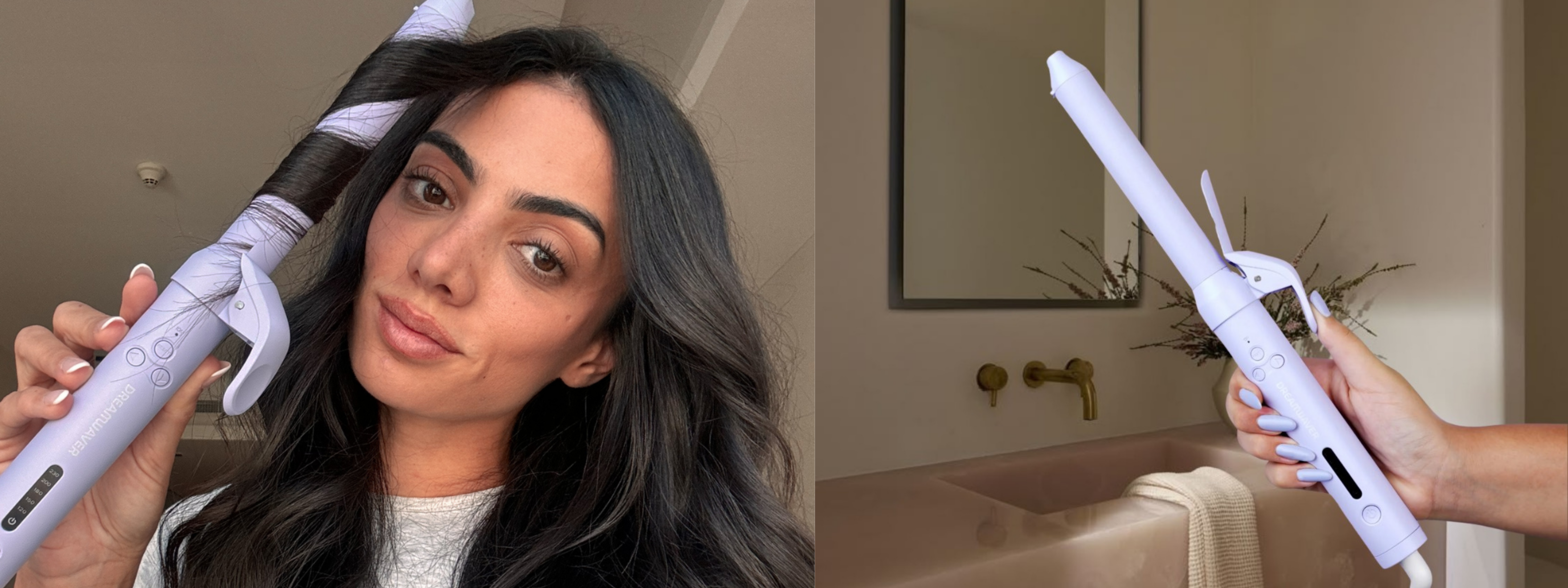 The Dreamwaver , perfect for all hair types, lengths, and textures. Designed with 2 arrow buttons to rotate curls in both directions, which is beveled for smooth curling and no kinks, as well as 5 pre-set heat ranges. Get loose beachy waves or a beautiful blowout with the touch of a button, in minutes.